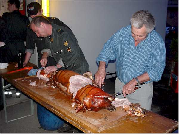 Julius Zemp hilft seinem Sohn Martin beim Aufschneiden