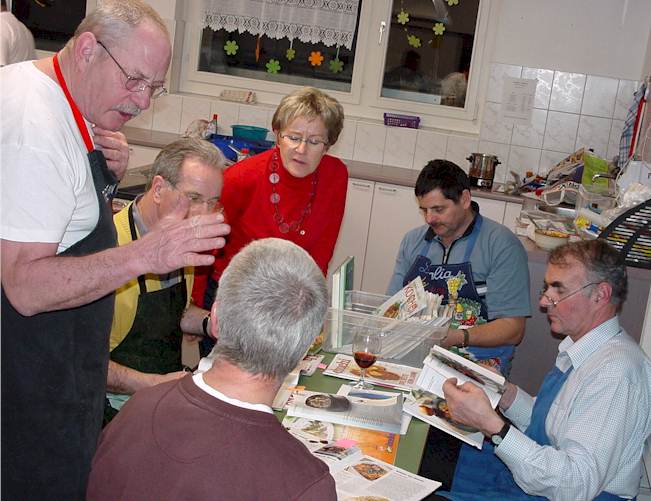 und von jedem der vier Tische ist einer bestimmt worden, der Mithilft das Menü zusammen zu stellen.